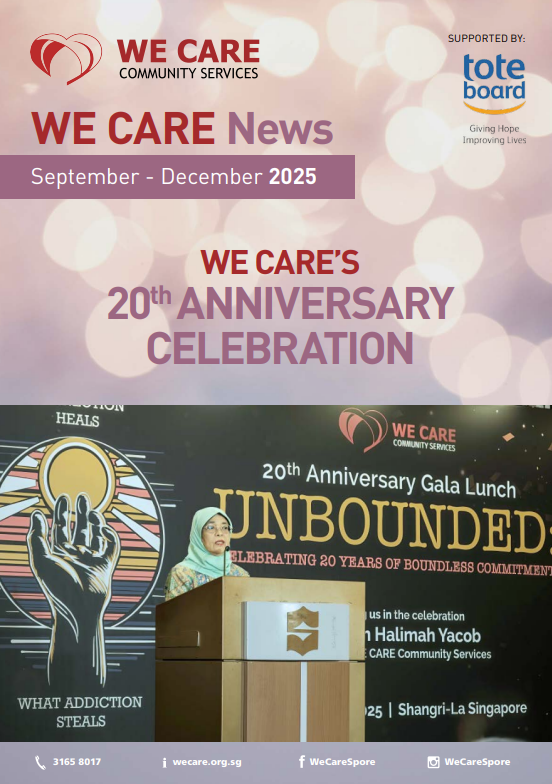 Read moreAs we approach 2025, WE CARE Community Services is preparing to celebrate 20 years of serving the recovering community and their families. Coinciding with this significant milestone, we are honoured to announce that Mdm Halimah Yacob, the former President of the Republic of Singapore and the current Chancellor of the Singapore University of Social Sciences (SUSS), has graciously accepted our invitation to become the Patron of WE CARE Community Services.